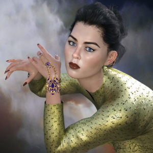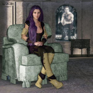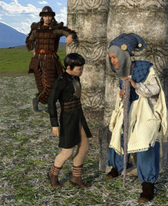 The fortune teller scene (I see Samarkand, young khan . .) follows from taking the class on Morphs – the warrior and the boy are the same figure but one has been aged and the other made younger. The fortune teller is a combination of three Asian base figures, then using the aging and face modification sliders to make her a little older.