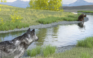 The wolf hunting the deerskin clad human is put together using the new Ultra-Scenery, which is recommended. it took less than 3 hours to render.
