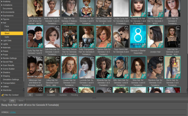 There are 2 different content panes or tabs. The first is the Content Library. It lists all installed files in a typical hierarchy. Genesis, Genesis 2, Genesis 3 and Genesis 8 figures and content can be found under “people” in … continue reading.
